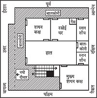 प्रशन: मैंने यह मकान हमारे वास्तु-पंडित के मार्गदर्शन में बनवाया था। इस मकान का भूतल किराये पर दिया है और प्रथम तल पर मैं सपरिवार रह रहा हूँ। हम पति-पत्नी के आपस में हमेशा मनमुटाव रहता है तथा आर्थिक नुकसान भी हो रहा है। हमारे वास्तु-पंडित का कहना है कि मकान की वास्तु सही होने के बावजूद, हमारी विपरीत ग्रह-दशा के कारण ही यह समस्याएँ पैदा हो रही है। इसके निवारण के लिये वास्तु-पंडित की सलाह के अनुसार हमने ग्रह-शांति करवायी थी। हमारे मकान की वास्तु सही है और ग्रह-शांति करवाने के बावजूद भी हमारी समस्याओं के क्या कारण हो सकते हैं? आपकी राय से अवगत कराये और हमारी समस्याओं का समाधान बताये।उत्तर: ना तो इस मकान के निर्माण में वास्तु के सिद्धांतों का पूर्ण रूप से पालन किया गया है और ना ही आपकी विपरीत ग्रह-दशा के कारण यह समस्याएँ उत्पन्न हो रही है। आपकी समस्याओं के मुख्य कारण इस मकान में व्याप्त वास्तु-दोष ही है। व्यावहारिक रूप से वास्तु-विषय का अध्ययन किये बिना, केवल कुछ पुस्तकें पढ़कर दी गयी सलाह के कारण ही आम-इंसान वास्तु-विषय के प्रति भ्रमित रहता है और वास्तु-विषय की महत्वत्ता कम होती है। मानव जीवन को प्रभावित करने वाले ग्रहों की विपरीत परिस्थिति से बचने के लिए, ग्रह-शांति इत्यादि उपायों पर अमल करके, क्या सौरमंडल में निरंतर चलायमान ग्रहों की गति को बदलना मुमकिन है? आप स्वयं चिंतन करके यह समझने की चेष्टा करे कि जब ग्रहों की गति को बदलना नामुमकिन है, तब ग्रहों को शांत करने के उपाय पर अमल करवाने के नाम पर रुपये खर्च करने से किसका फायदा हो रहा है? यह आपका कर्त्तव्य होता है कि किसी भी विषय की उचित-अनुचित कार्य-पद्धति का सही आँकलन करके ही उस पर अमल करे। बालकोनी का उत्तर-ईशान कटा हुआ होना, आग्नेय में स्थित स्नानघर/शौचालय, मकान के पश्चिम में स्थित सीढ़ियों का मुख्य शयन-कक्ष के उत्तर-ईशान में आना, मुख्य शयन-कक्ष के पूर्व-आग्नेय में अटैच स्नानघर/शौचालय के कारण इस शयन-कक्ष की पूर्व-ईशान दिशा का कट जाना, हाल तथा मुख्य शयन-कक्ष के उत्तर-वायव्य और ईशान के कमरे के पूर्व-आग्नेय एवं पश्चिम-नैत्र+त में स्थित दरवाजे इत्यादि, वास्तु-दोषों के दुष्परिणाम ही आपके जीवन को समस्याग्रस्त स्थिति में परिवर्तित करने में अहम भूमिका निभा रहे है। आपकी समस्याओं से स्थाई रूप से समाधान प्राप्त करने के लिये अपेक्षित फेरबदल:-